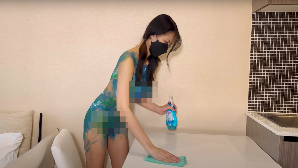 ▲日前有女YouTuber以“全裸+人體彩繪”在家打掃,并拍攝成影片上傳YouTube爆紅。(圖/翻攝自Youtube Aoki Body Art)