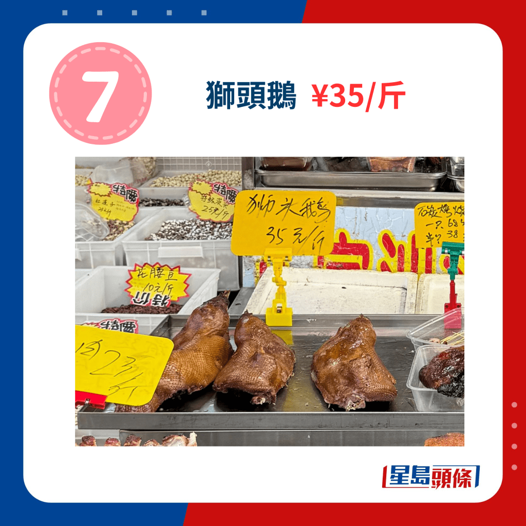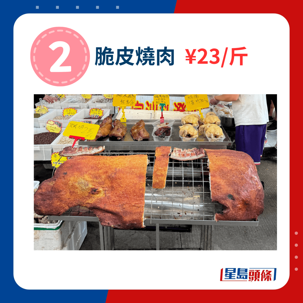 喜歡北上買燒味的朋友,更加不可錯過坳下肉菜市場的燒味檔。雖然這個街市細細,但單是燒味及鹵水檔就有5、6間,售價亦相當吸引,如文昌雞每只¥70、清遠走地鹽焗雞¥55/只、順德燒鵝¥198/只、獅頭鵝¥35/斤等。 當中以脆味燒肉最受歡迎! 每逢有燒豬出爐就會引來街坊蜂涌前往購買,而且每斤只需¥20左右,比起口岸的燒味檔更劃算。