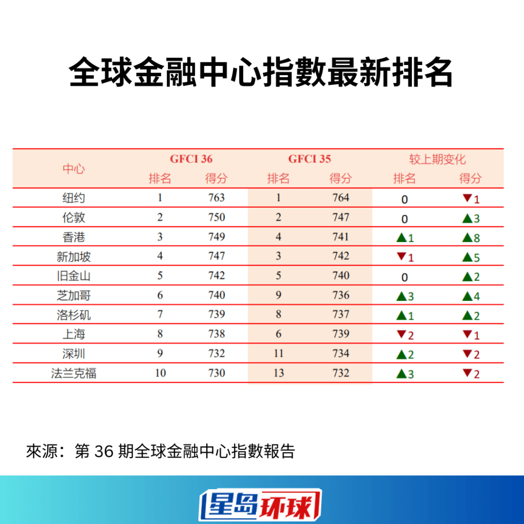 • 國際金融中心再現“紐倫港”,香港重返三甲,相隔2年再超越新加坡