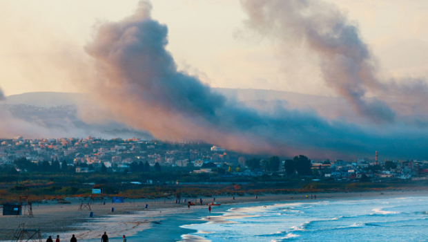 以軍空襲黎巴嫩南部,一個海灘附近冒起濃煙。