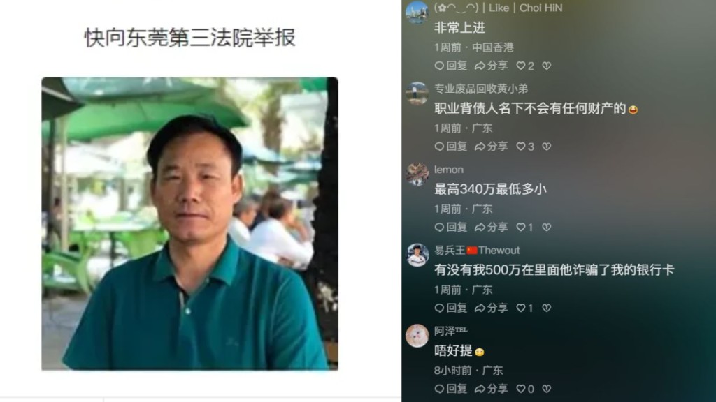 近日,東莞市第三人民法院發布一則懸賞公告,懸賞金額高達340萬元(人民幣?下同),以尋找一名深圳男子的財產線索。