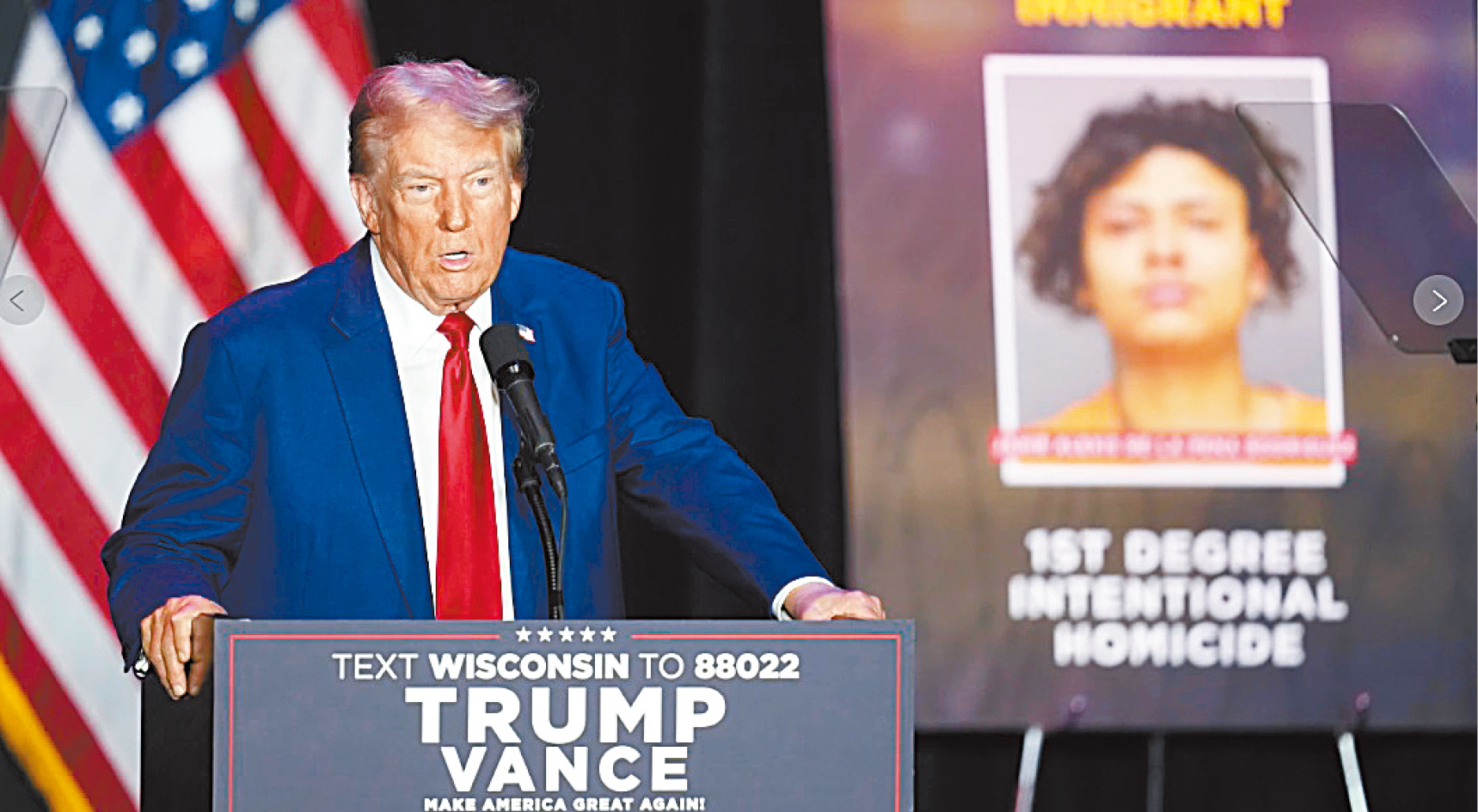 前總統特朗普在威斯康辛州舉行造勢集會,形容大選對手、副總統哈里斯為“白癡”,一旦當選將令國家淪為第三世界,又指對方的邊境政策導致大批移民來美,相反他若重返白宮,將執行史上最大規模的遣返行動,解放威州和全國。