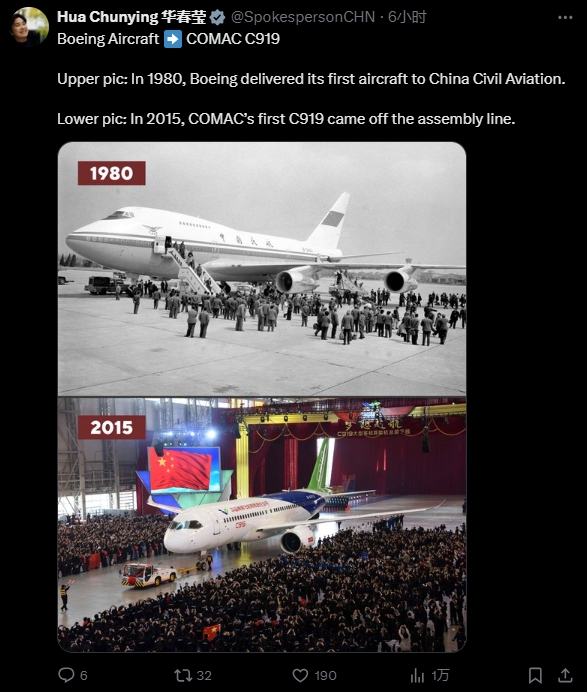 1980年,波音公司向中國民航交付第一架飛機。