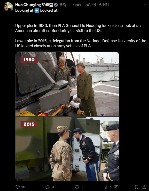 10月1日是新中國75周年華誕。當天,外交部副部長、新聞司司長華春瑩在社交媒體X平臺發布18組對比圖,展示了過去75年間,中國的巨大變化。其中包括了“中國航母之父”劉華清在美國參觀航母的經典照片。
