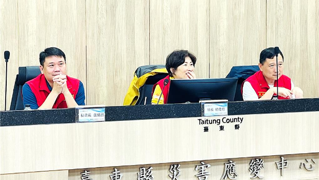 臺東縣政府原宣布4日正常上班上課,大批網友心碎,向縣長饒慶鈴(中)釋出機會改口