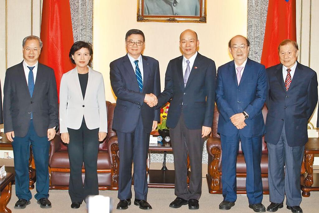 ▲原訂4日由“立法院長”韓國瑜作東的朝野和解飯,因臺風擾局決延期。圖為“行政院長”卓榮泰(左三)拜會韓國瑜(右三)。(中時新聞網資料照片)