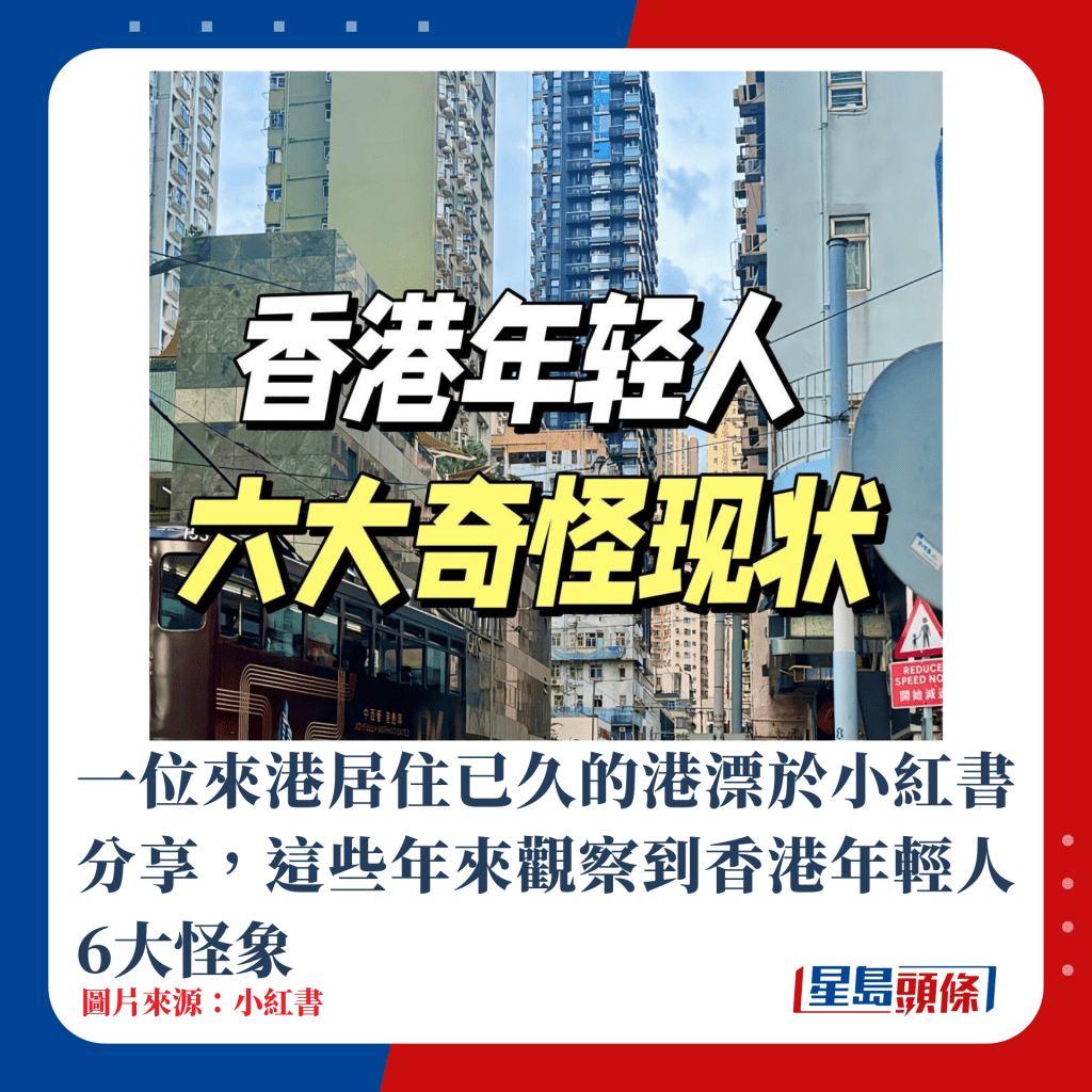 一位來港居住已久的港漂于小紅書分享,這些年來觀察到香港年輕人6大怪象