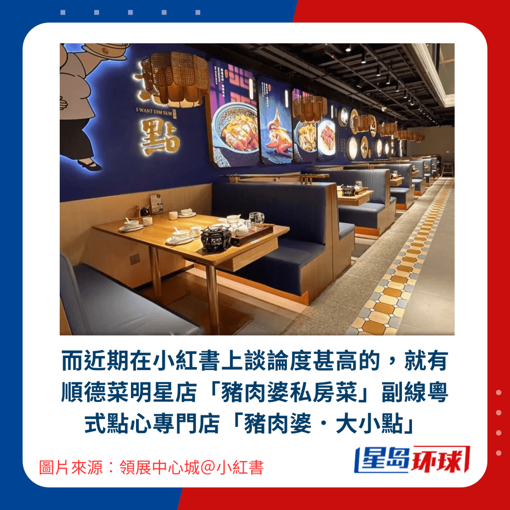 深圳新商場愈開愈多,連帶有不少新餐飲食肆開到深圳來,令港人北上更客易吃到來自全國的美食!而近期在小紅書上談論度甚高的,就有順德菜明星店“豬肉婆私房菜”副線粵式點心專門店“大小點”,首次攻入深圳,于領展中心城開業,除點心外還有總店的招牌菜供應。這間明星店在內地人氣高企,連謝霆鋒、四哥謝賢、阿叻陳百祥,以及立法會議員葉劉淑儀都捧場!不過,有網民就表示不睇好深圳店,皆因其菜式價錢非便宜,一只燒鵝就叫價¥598,簡直“貴得要死”。