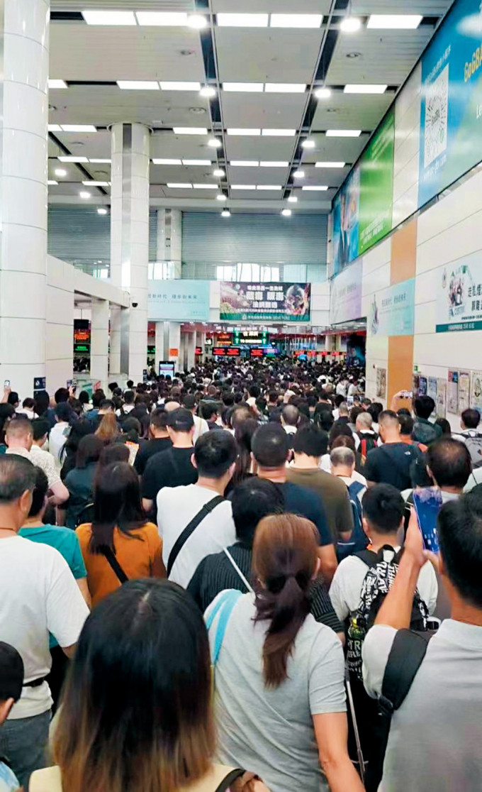 ▲深圳灣口岸昨早人滿為患,警方一度呼吁市民改用其他口岸進入內地。