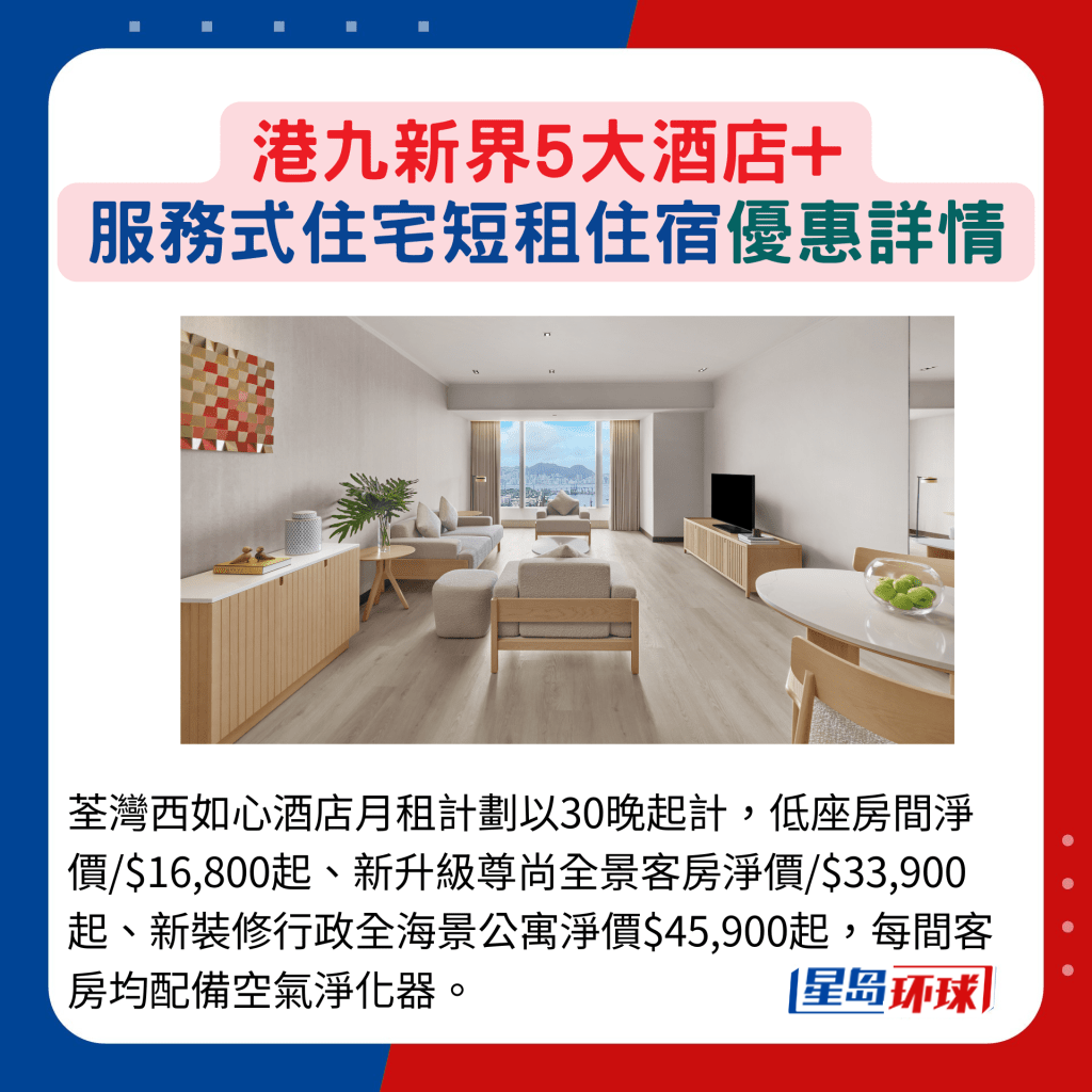 港九新界5大酒店+服務式住宅短租住宿特色優惠詳情