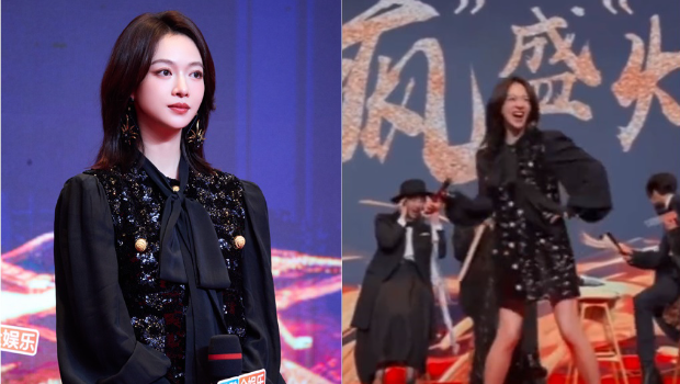 ▲吳謹言豁出去跳鞭子舞。(圖/微博)