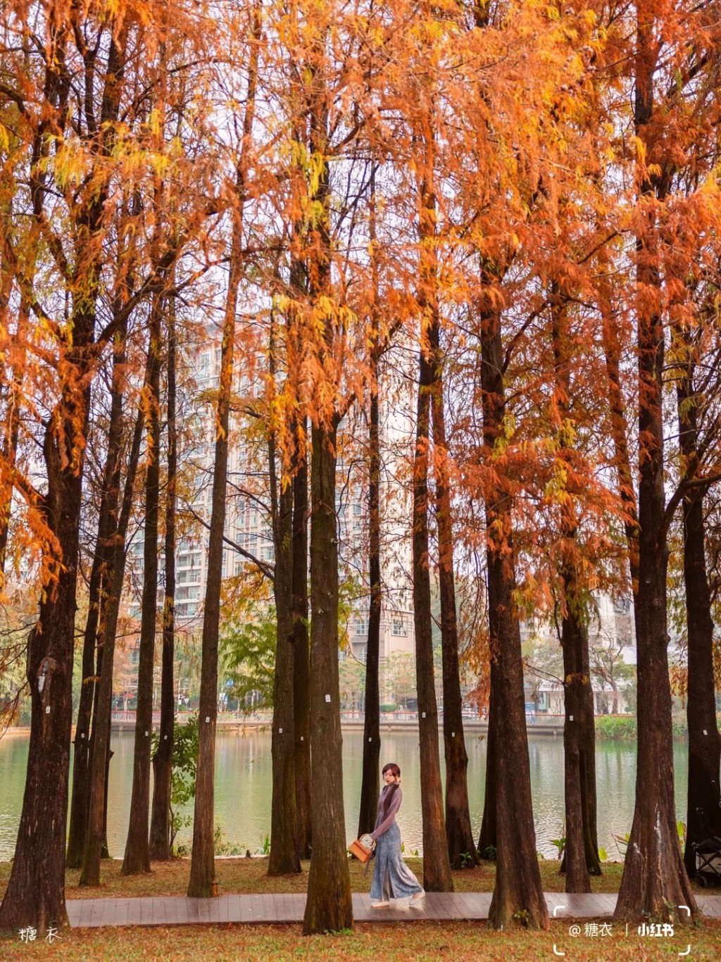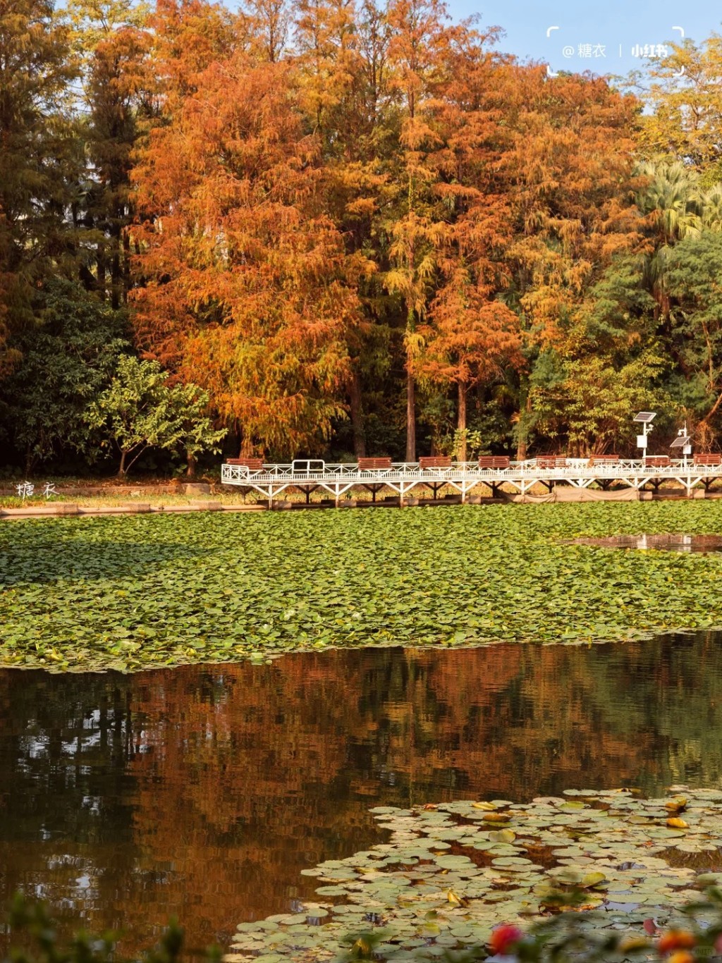 洪湖公園有延綿近2公里的落葉杉木林(圖片來源:小紅書@墨妮卡)