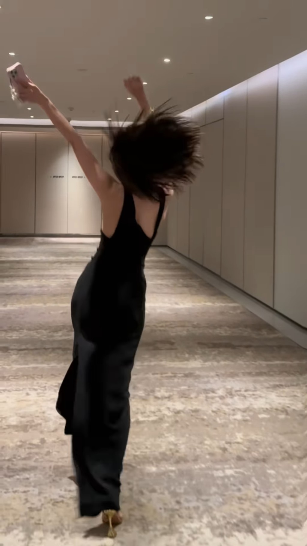 昨日(21日),高海寧在IG上發布了一條在酒店走廊跳舞的影片,并留言:“阿帕茲~ 阿帕茲~呢只歌真系好洗腦,但系好正~ 聽一次開心一整日,記得睇到尾~~ hahaha”,影片中可以看到高海寧穿上一條露背開衩的黑色連身長裙,在酒店走廊隨著工作人員播放近期走紅的洗腦歌《APT.》熱舞,期間她又行catwalk,又轉圈獻飛吻,跟著音樂節拍搖曳,心情好到爆,不過就在高海寧忘我地轉圈時,其豐滿上圍一覽無遺,更不慎露出些許側乳,場面香艷。