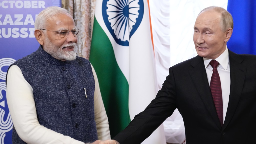 印度總理莫迪與俄羅斯總統普京在喀山會面。 美聯社
