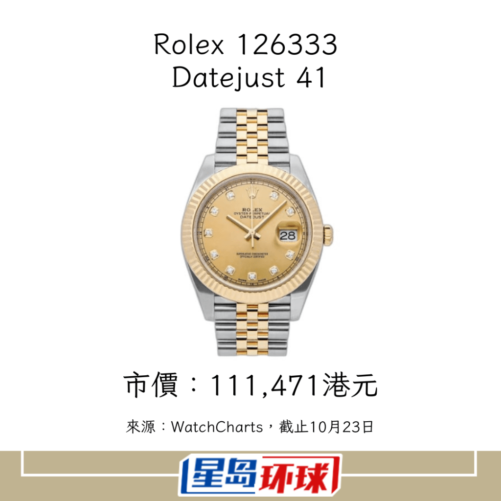 ▲勞力士當中,以Air-King、Day-Date及Datejust表現最佳。圖為勞力士價格指數中,其中一只Datejust。