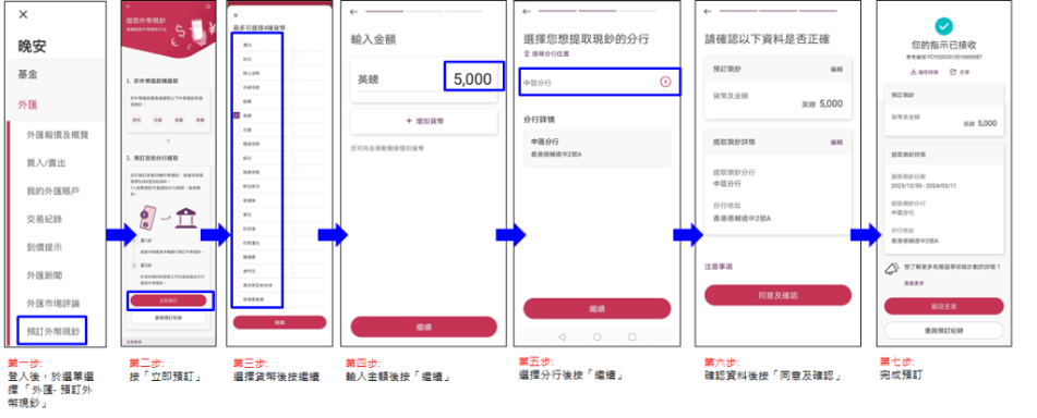 只要利用網上銀行服務,就可以安坐家中利用電匯價先兌換外市到自己的外市戶口,然后再在網上或致電向銀行預訂想提取的外市現鈔數量,再到銀行提取。(中銀香港)