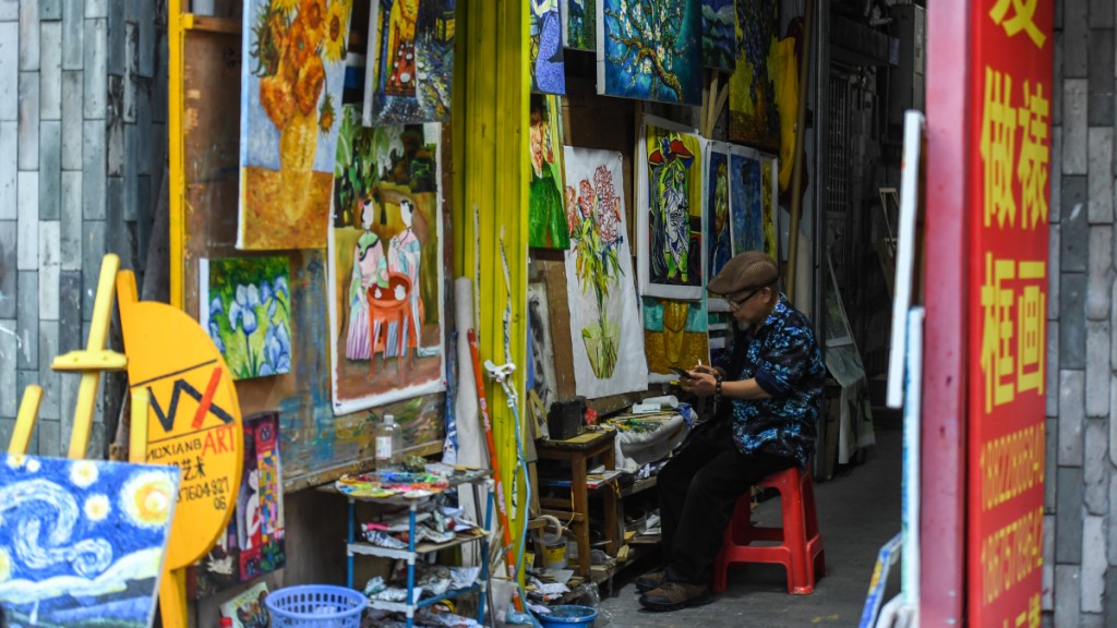 ▲大芬村作品以仿西洋油畫聞名。星島圖片