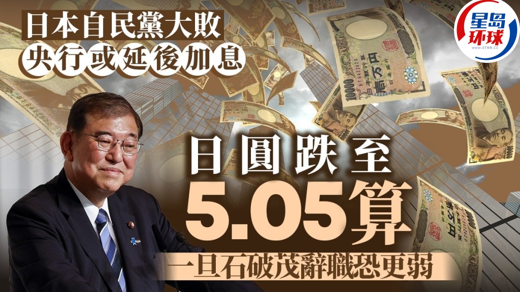日本自民黨受中飽私囊的丑聞影響,與盟友公民黨組成的執政聯盟在眾議院選舉中大敗,令市場預期日本央行可能難以采取加息行動。 受消息影響,日圓匯率走弱,兌美元曾觸及153.875水平,是近3個月以來最低;每百日元兌港元則曾跌近0.9%至報5.05算。 另有分析指出,日本首相石破茂一旦辭職,日圓可能進一步走弱。
