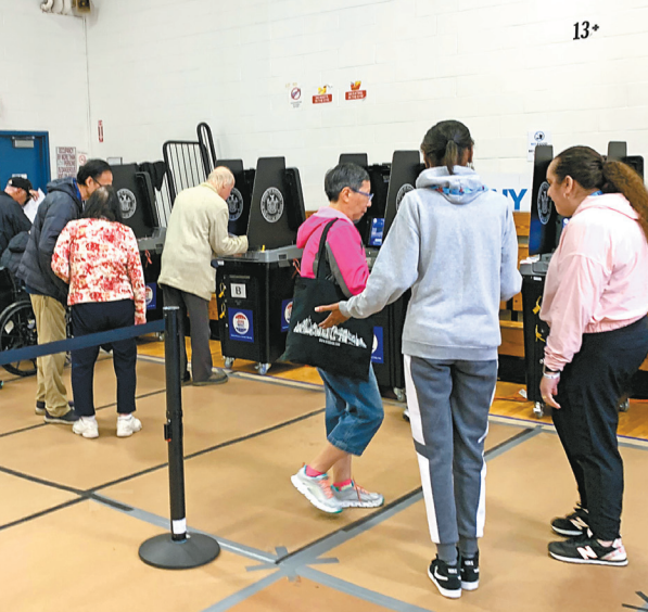 皇后區法拉盛投票站,華裔和不同族裔選民掀起長時間排隊等侯投票熱情。