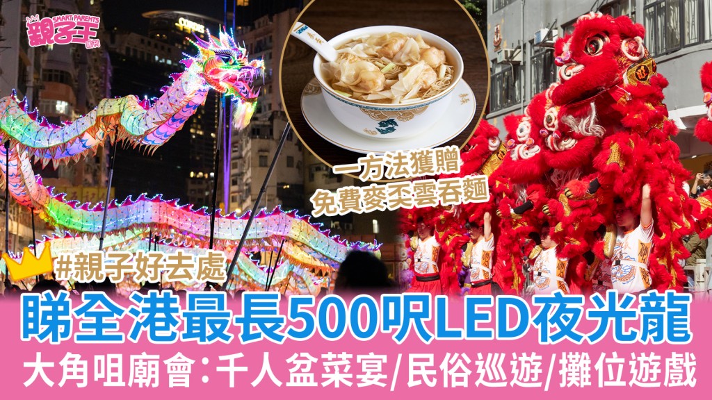 • 大角咀廟會香港最長LED夜光龍登場!千人盆菜宴/民俗巡游