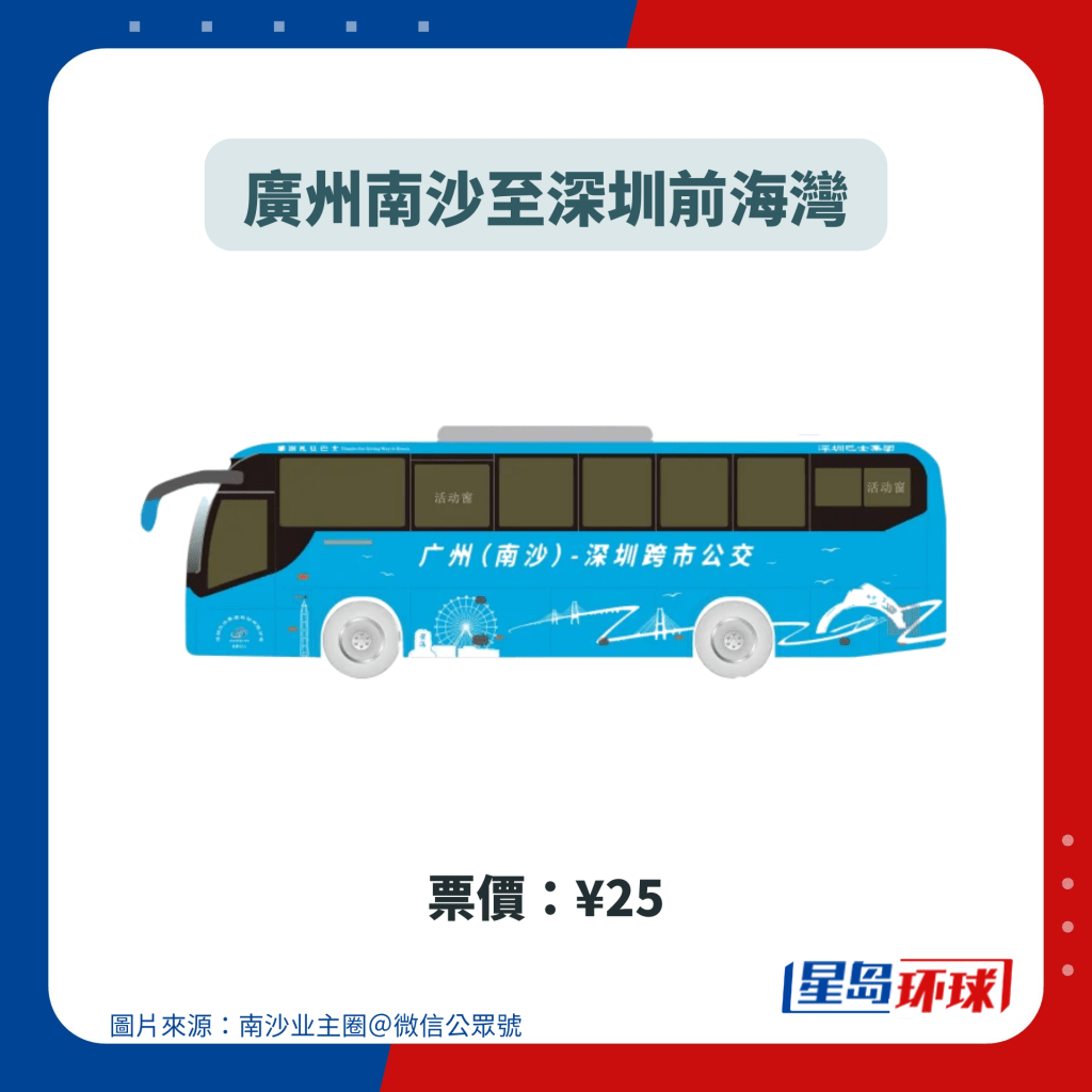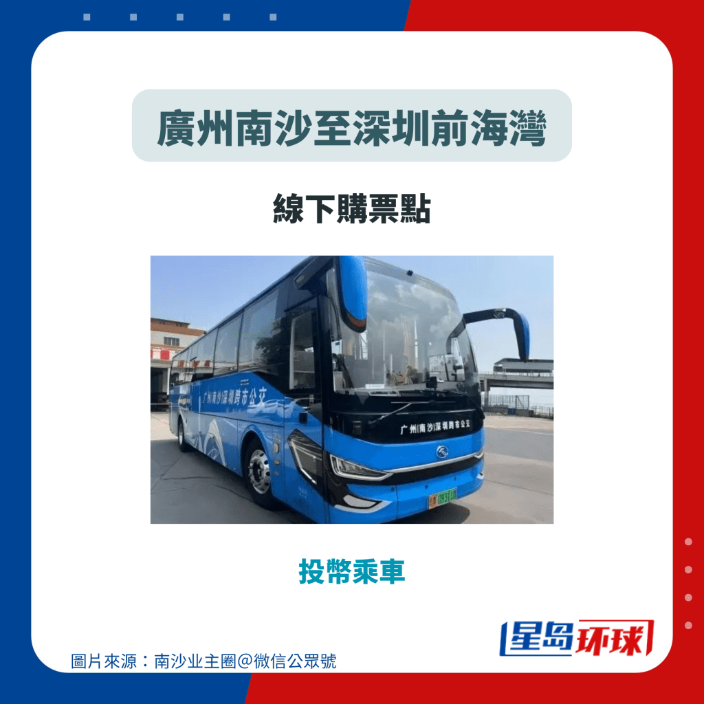 為配合深中通道南沙線的發展,深圳巴士集團計劃將在通車當日推出跨市直通車,來往廣州南沙至深圳前海灣的巴士票價¥25,而來往廣州南沙至深圳寶安機場的快線票價則為¥60。每日雙向運行36班,單程時長約1小時,乘客可透過現場購票點或在線預約購票,更多有關購票、服務時間及上落車點的信息詳見圖輯。值得一提的是,跨市直通車選用全新39座巴士,配置航空式座椅,提供更舒適的乘車體驗。