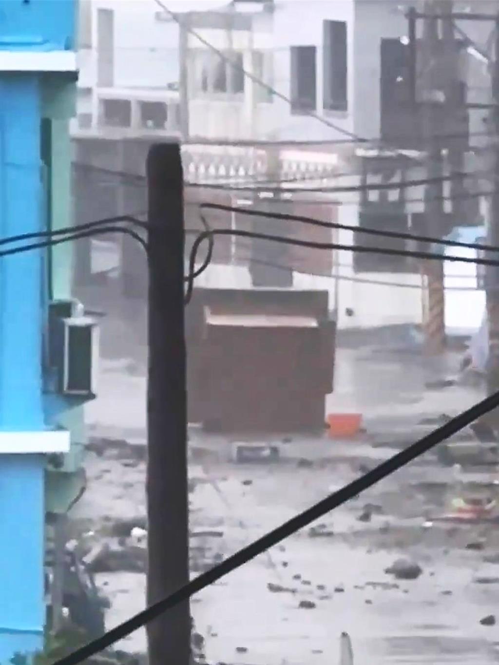 ▲蘭嶼街道滿是被強風吹落的物品。 讀者提供