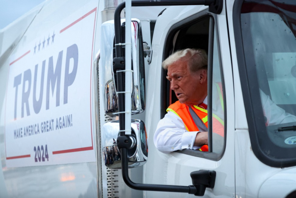• 美國大選2024 |?挖苦拜登失言,特朗普坐垃圾車造勢
