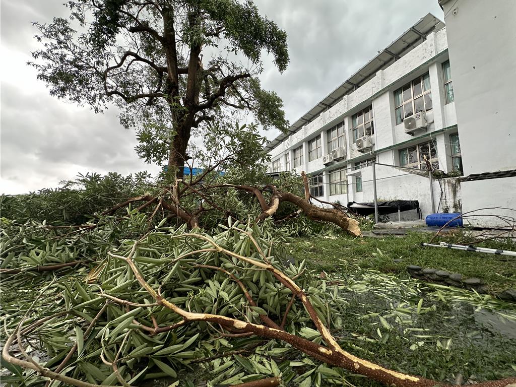 豐榮“國小”校園除車棚損毀,不少校樹也遭強風攔腰折斷,毛慧莉表示,一早了解情況后就立刻通報臺東縣府教育處,同時也已聯絡廠商。她強調,由于目前風強雨驟,以人員安全為優先,考量學校同仁及施工人員出入安全,暫請同仁勿貿然到校視察校園災損,待臺風過境后再行處理。