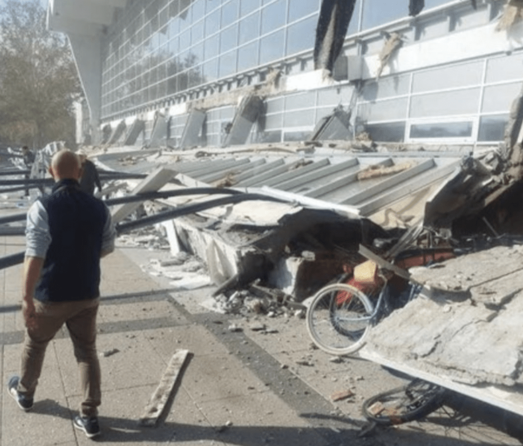 ▲塞爾維亞中北部城市諾維薩德火車站一幅長約35米的混凝土檐蓬突然倒塌,造成14人死亡。社交平臺X圖片