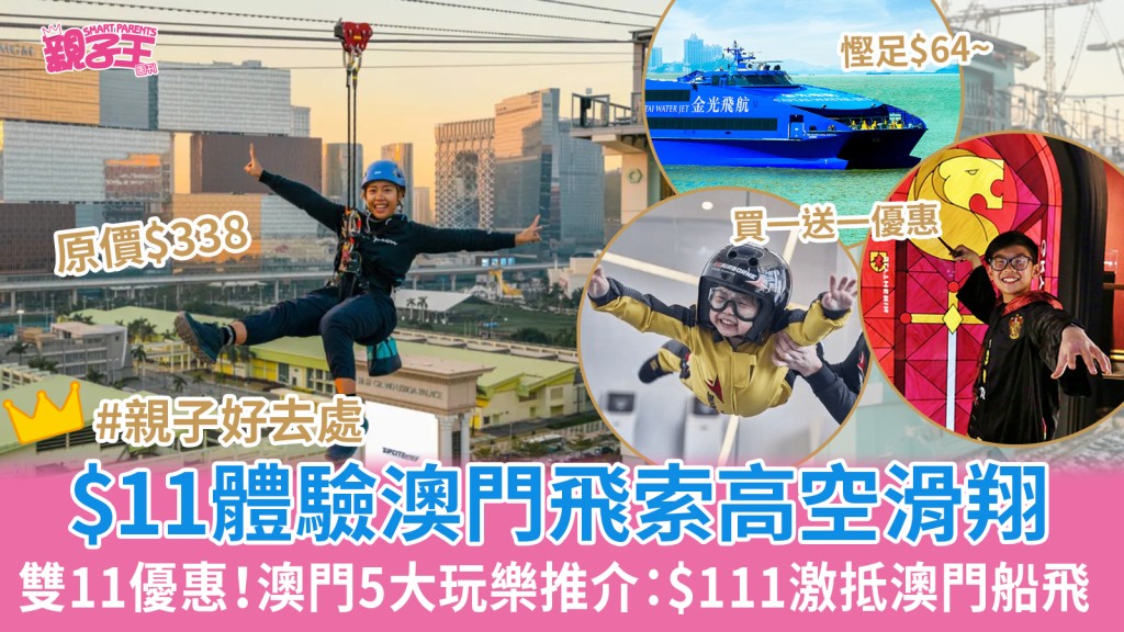 快到圣誕新年長假期,不少爸媽都會趁著試后帶孩子北上玩樂,或是到澳門短游吃喝玩樂。適逢雙11優惠,各大玩樂旅游平臺均有大量優惠推出,今日(2日)就有5大澳門親子好去處優惠,加上平臺的折上折優惠就更著數。即睇澳門玩樂優惠推介,mark實開搶日期與優惠連結到時去搶。