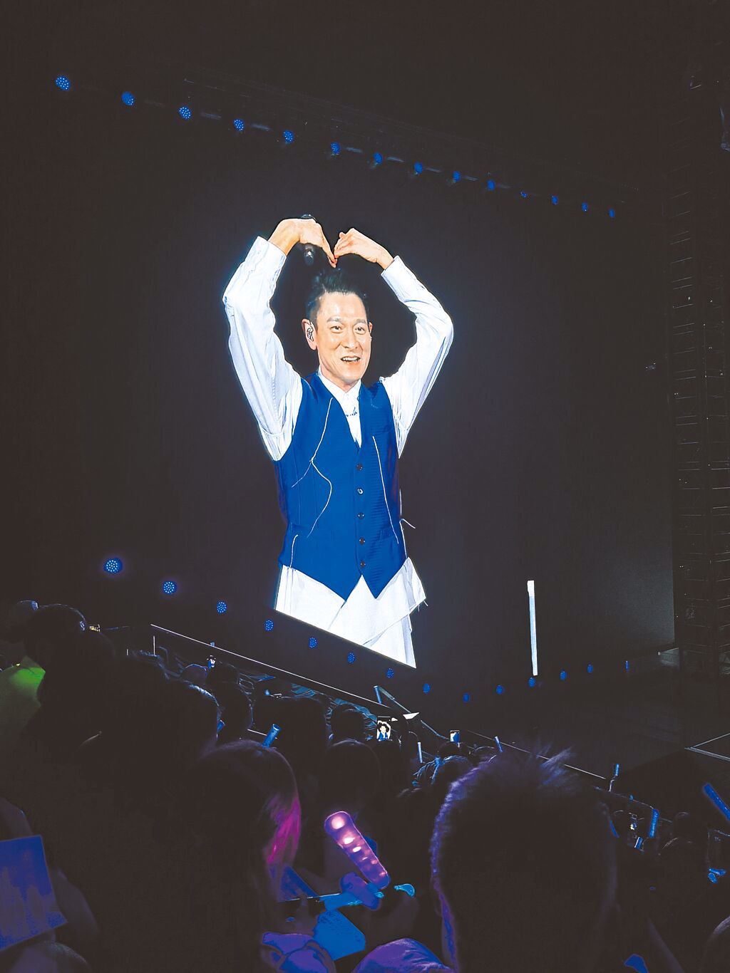 ▲劉德華3日比出愛心手勢,讓全場“劉太太”好滿足。(讀者提供)