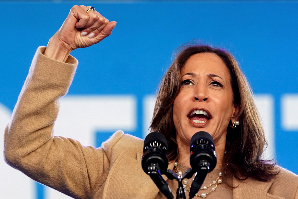 英國民調機構Focaldata進行的上萬人大型調查顯示,賀錦麗拿下4個搖擺州勝出。(路透社)
