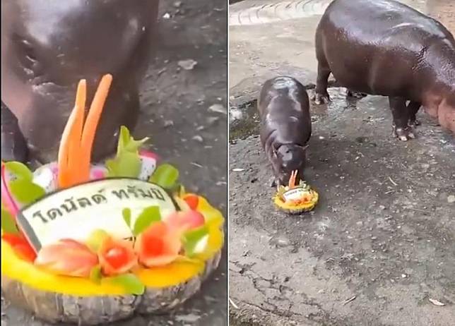 美國總統大選全球矚目,各方關注誰會入主白宮,預測滿天飛。泰國動物園忽發奇想,安排動物明星小河馬“彈跳豬”(Moo Deng)為今屆大選預測投票結果,制作了2個水果蛋糕,并標上2黨候選人特朗普及哈里斯的名字,結果“彈跳豬”毫不猶豫選擇特朗普。