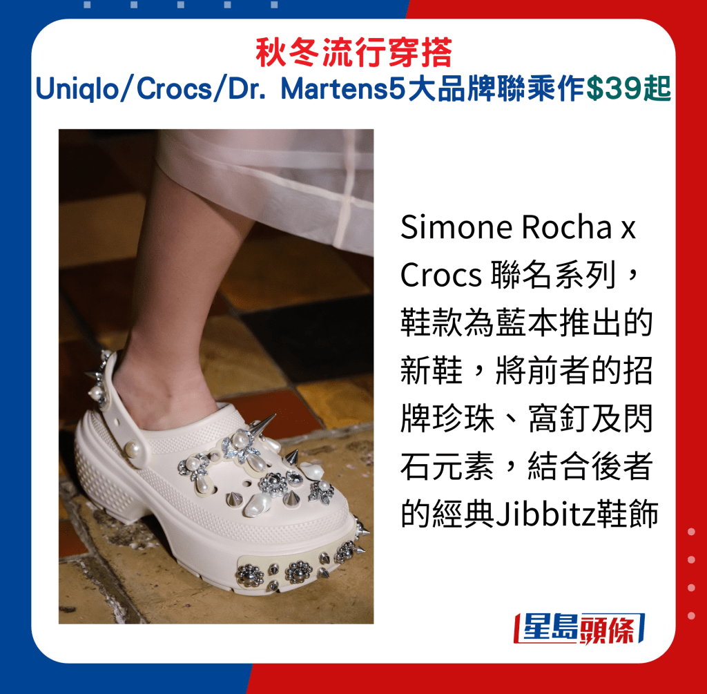 Simone Rocha x Crocs 聯名系列,鞋款為藍本推出的新鞋,將前者的招牌珍珠、窩釘及閃石元素,結合后者的經典Jibbitz鞋飾
