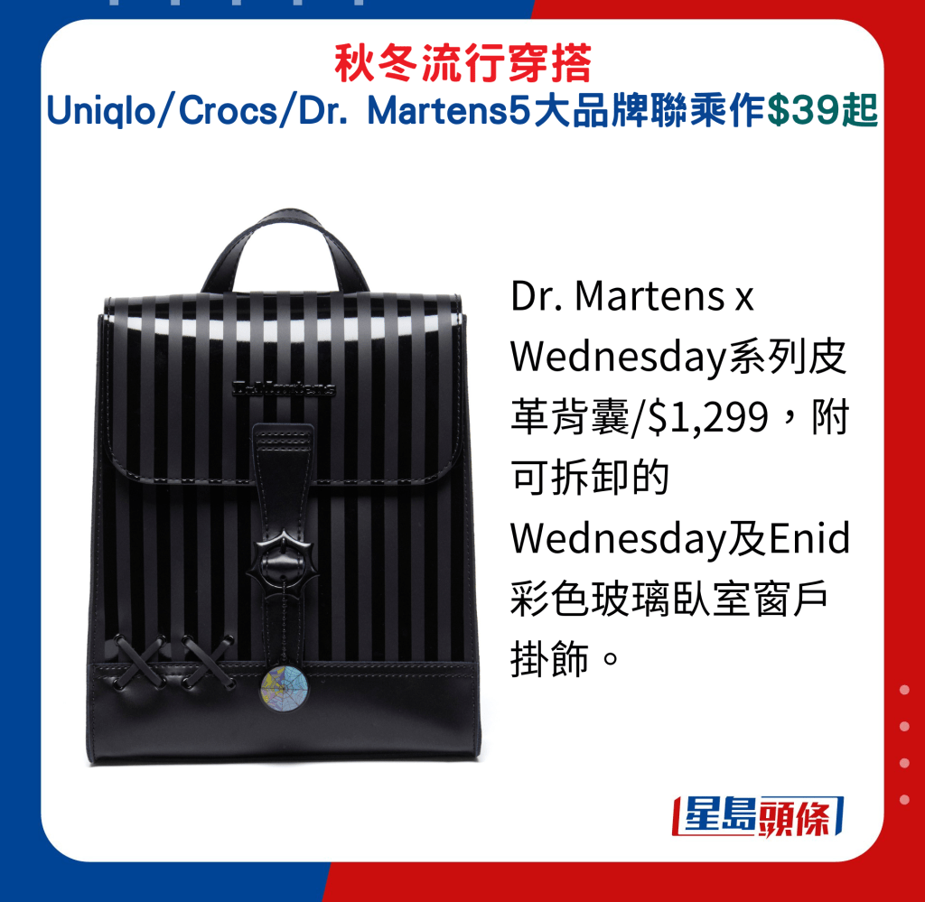 Dr. Martens x Wednesday系列皮革背囊,附可拆卸的Wednesday及Enid彩色玻璃臥室窗戶掛飾。