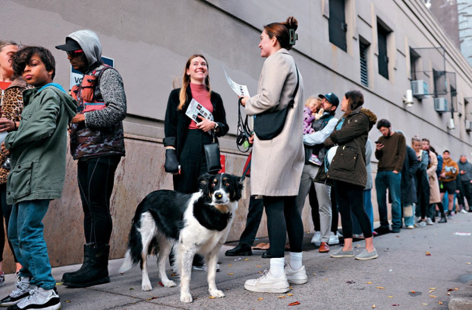 ▲紐約選民在曼哈頓一個投票站外排隊投票。