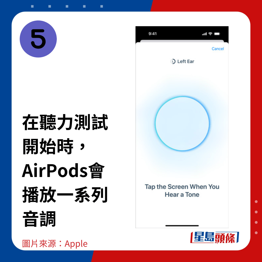 5.在聽力測試開始時,AirPods會播放?系列音調