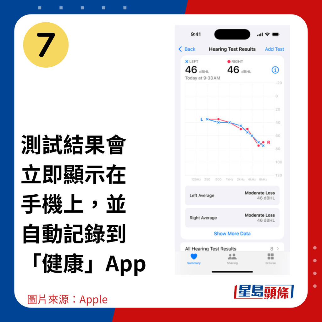 7.測試結果會立即顯示在手機上,并自動記錄到「健康」App