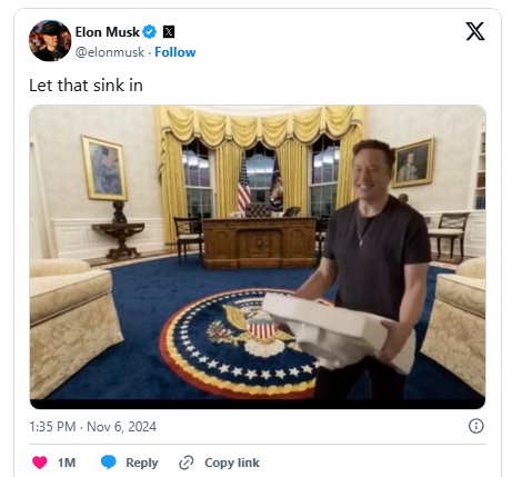 • 馬斯克將入閣?“押注成功”嗨秀進白宮P圖:大勢底定