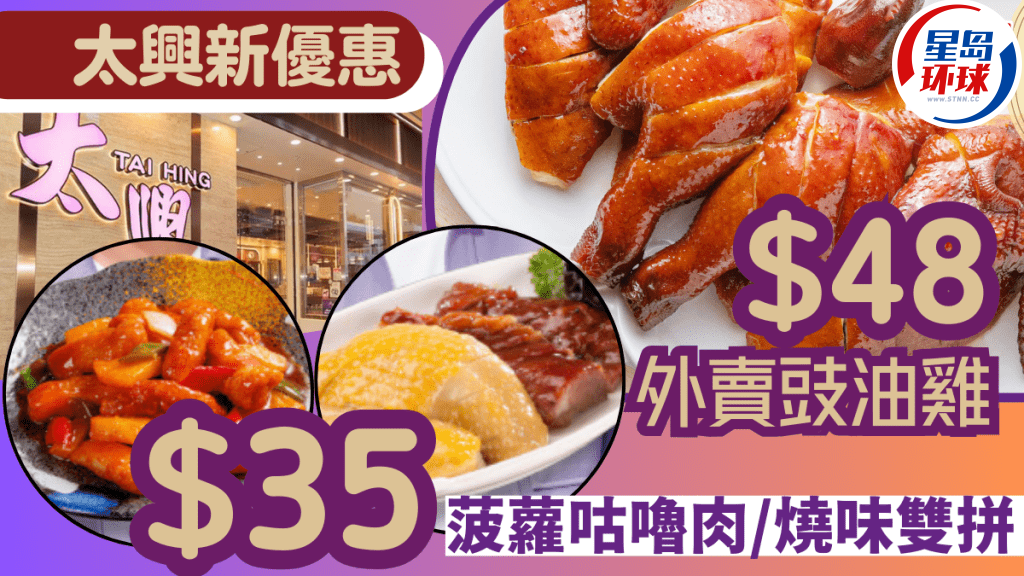 本地連鎖餐飲太興集團宣布推出多項飲食優惠,有如外賣$48/半只香茅豉油雞,此外,亦有一系列晚市優惠,可以$35特價換購多款招牌菜式,如菠蘿咕嚕肉或菜遠炒牛肉,甚至連燒味雙拼也有,優惠于指定時間供應,內文附優惠詳情!