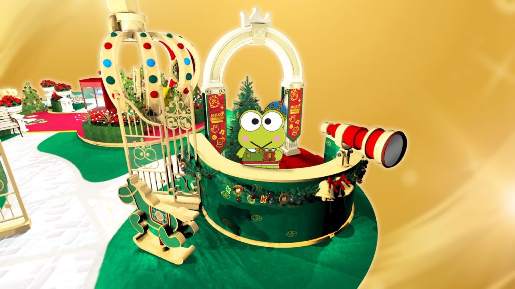 Sanrio角色KEROPPI以王子造型登陸旺角MOKO,與各位粉絲一齊過夢幻圣誕,場內設有5大打卡場景以及3大互動游樂體驗,其中5米高KEROPPI的5米高皇冠寢室充滿華麗風格,KEROPPI化身高貴王子與大家打卡! 另外,庭園入口設有小朋友喜歡的搖搖木馬,KEROPPI變身騎士于暸望臺與大家合照。 大家不能錯過必玩的寶物荷花池互動裝置,市民可以踏上設于池塘位置的互動電子屏幕,尋找神秘禮物! KEROPPI更會藏身于商場的不同角落,商場2樓至5樓會出現不同造型的貼紙,掃瞄旁邊的二維碼可獲得限定電子圣誕卡一張。