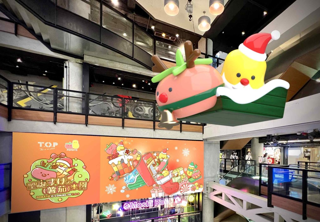 旺角T.O.P.聯同小薯茄將商場布置成“圣誕すげえ(薯茄)樂園”,設有5大打卡位及一系列互動游戲,包括首次以圣誕裝出現的3米高薯仔圣誕老人,以及西紅柿鹿仔于空中花園大派禮物,再加上程人富、阿冰、童童等7位幕前成員的1:1人形立牌打卡,粉絲可以瘋狂合照!
