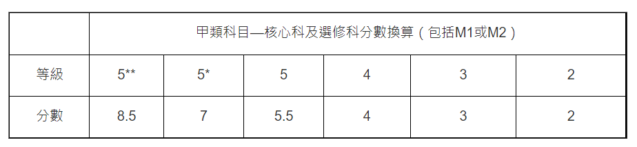 最佳5科計分方法:英文+數學+最佳生物/化學/物理/M1/M2+最佳2科