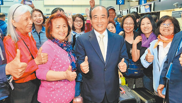 ▲圖為王金平2019年赴陸尋根之旅,在桃機與支持者合影。(中時資料照片)