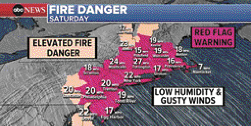 ▲美國國家氣象局向東北部8個州份發出最高級別的紅旗警報,表示區內因為干燥容易發生山火,共有4000萬人受影響。ABC圖片