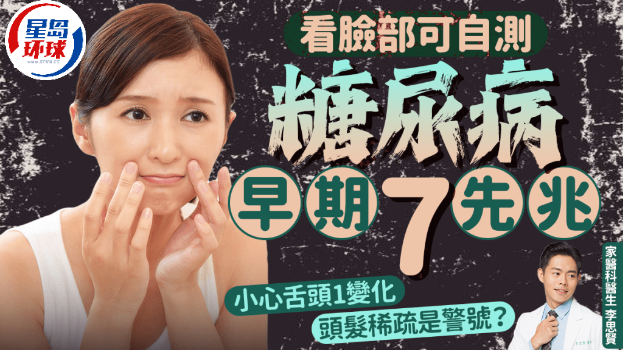 10個香港人就有1個患糖尿病,除了抽血檢查血糖外,可從臉部自測糖尿病先兆?有醫生指出,若臉部出現7大變化,恐是患糖尿病早期癥狀。若發現舌頭出現1種變化,宜盡早求醫檢查。