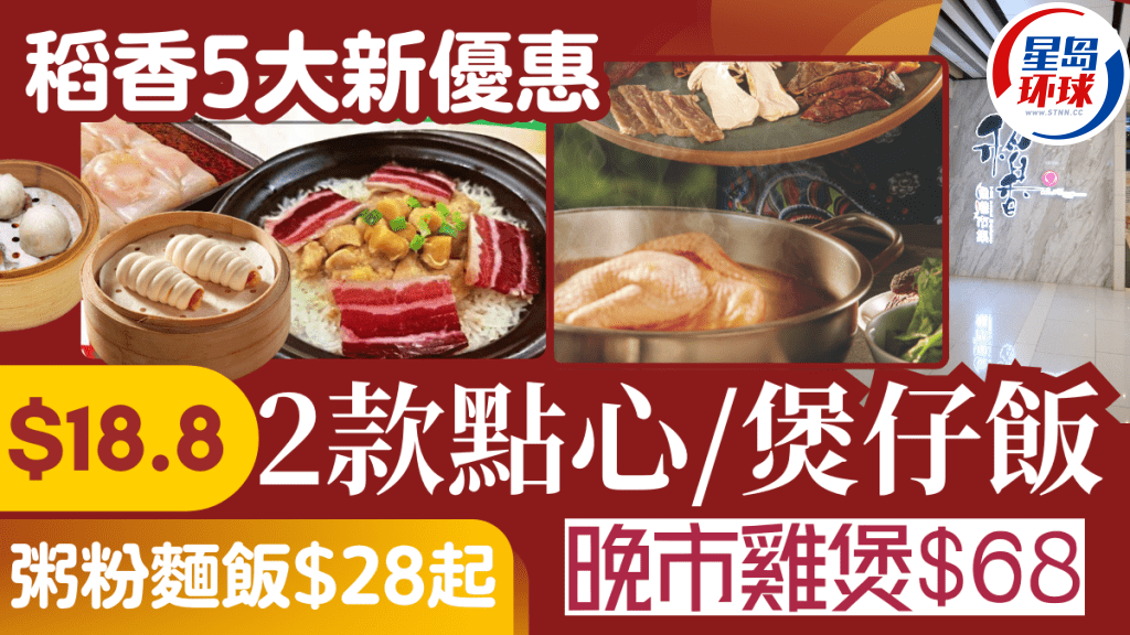 稻香集團現推出早午晚市小菜以及長者專享優惠,由即日起,前往稻香集團旗下稻香、稻香超級漁港、稻香漁港市集及稻香. 茶居等品牌,即可以低至$18.8享用兩款點心、煲仔飯、火鍋、粥粉面飯等,即睇稻香5大優惠合集。