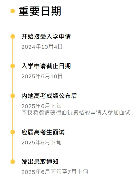 申請人必須于2025年6月11日前通過網上申請系統補交高考考號并在6月下旬內地高考成績公布后盡快于網上申請系統填寫其高考成績。高考成績公布后,香港科技大學將根據當年實際申請情況,并參考各省市的一批線及內地重點大學的分數線等,訂定各學院的面試分數線要求。