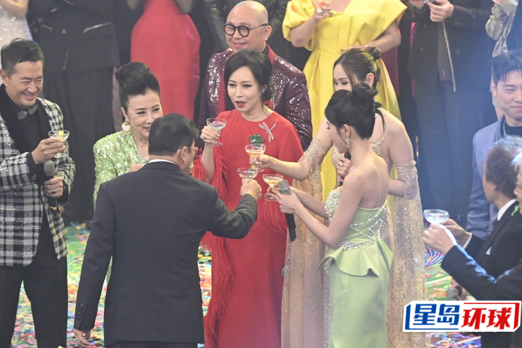 汪明荃、顧紀筠、陳貝兒等與高層祝酒。