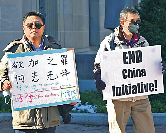 華人在聯邦司法部大樓抗議“中國行動計劃”。